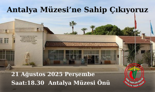 KÜLTÜREL MİRASIN KORUNMASI ÇAĞRISI 14 Temmuz Pazartesi(BUGÜN) saat:18.00’da Antalya Müzesi önünde buluşuyoruz. Tüm Meslektaşlarımızın Katılımını Bekleriz. Antalya Tabip Odası Antalya Müze Çalışma Grubu tarafından oluşturulan