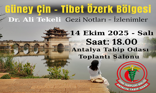 Değerli Meslektaşlarımız, Dr. Ali TEKELİ ile Güney Çin – Tibet Özerk Bölgesi Gezi Notları – İzlenimler etkinliğimiz 14 Ekim 2025 Salı günü saat: 18.00′ da