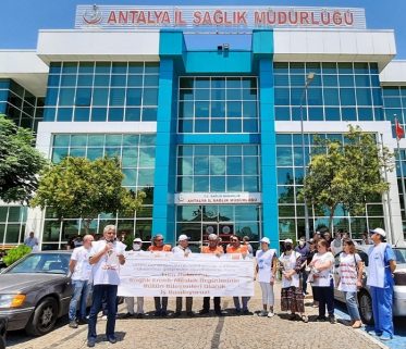 Hekimler ve sağlık emekçileri Türkiye genelinde iş bıraktı. Hekimler ve sağlık emekçileri daha önce başlattıkları eylem dizisini bugün itibariyle bir günlük GöREV etkinliğine taşıdılar. Antalya’da