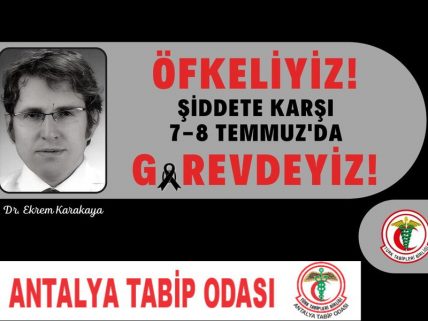 Türk Tabipleri Birliği (TTB) ve sağlık emek-meslek örgütlerinin çağrısıyla; Konya’da görevli meslektaşımız Dr. Ekrem Karakaya’nın uğradığı silahlı saldırı sonucu yaşamını yitirmesi üzerine sağlıkta şiddete karşı