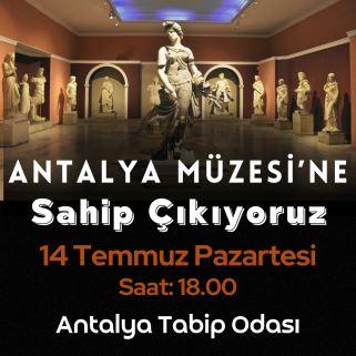 KÜLTÜREL MİRASIN KORUNMASI ÇAĞRISI 14 Temmuz Pazartesi(BUGÜN) saat:18.00’da Antalya Müzesi önünde buluşuyoruz. Tüm Meslektaşlarımızın Katılımını Bekleriz. Antalya Tabip Odası Antalya Müze Çalışma Grubu tarafından oluşturulan