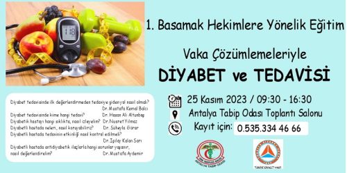 Değerli Meslektaşlarımız, Antalya Tabip Odası ve Türkiye Diyabet Vakfı’nın birlikte düzenlediği “Diyabet ve Tedavisi” başlıklı 1. Basamak sağlık hizmeti sunan meslektaşlarımıza yönelik eğitim 25 Kasım